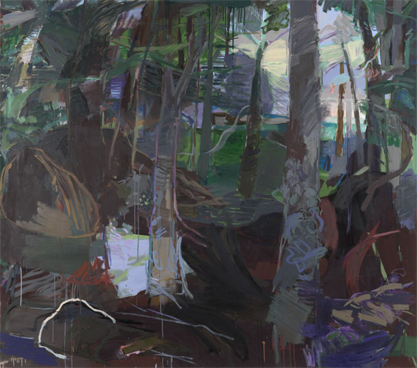 […] Denise Richardt widmet sich bereits seit Mitte der 1990er Jahre der Landschaftsmalerei. Die junge Berliner Künstlerin malt weder neoromantische noch arkadische Idyllen. Sie zeigt auch keine topographischen Ansichten, im Gegenteil – sie entfernt sich weit von dem ursprünglichen Motiv, ihre Bilder erscheinen vielmehr als Topographien der Malerei selbst. Ihre menschenleeren Landschaften – beispielsweise der Gipfel (2005) oder der geheimnisvolle Wald (2006) – führen uns vor Augen, dass die Natur eine unerschöpfliche Vielfalt an Farben und Formen hervorbringt.